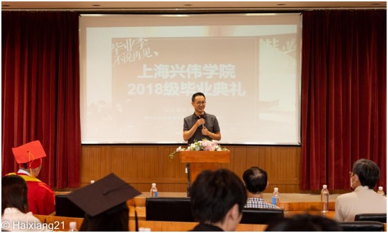 2018级英语专业文语晟同学代表毕业生作了发言。他首先向精心培育他们的老师和教练们致以衷心的感谢!向多年来辛勤教育、养育他们的父母致以最崇高的敬意! 向共同走过4年的同学们致以最真诚的祝福!接着认真回顾了自己四年来大学生活的点点滴滴、付出和收获,以及对博雅教育的感知和肯定。表示博雅教育与“自由、激情、致良知”的校训是兴伟学子间最热门的讨论话题;学院独特且魅力非凡的教育理念和校训如同没有标准答案的期末试卷,激励他们在兴伟这座特殊的学院里不断寻找合适的解答,今天,他也将交上对博雅教育感知和践行的答卷:即合理运用身边的资源,将技能逐步磨练成能力,通过支点无限放大自己的优势,最终成为最好的自己。同时,发言中也分别谈到了对学院校训的理解和感悟:即自由是心态,是状态,是选择,也是不作选择,它可以是任何词性,但决不代表我们一开始认为的随心所欲。激情是校训中最容易理解、最难以落笔、最需要坚持的。正是激情让他一直努力去实现心中最单纯、最炙热的愿望和梦想。致良知让他学会了感恩过去,用感激的心拥抱过去,因为是过去造就了今天的他们;让他领悟了学院“做人第一,重视修业”的办学理念,自己也会努力做一个社会需要、对社会有所贡献的人。发言最后,文语晟同学祝愿学校越办越好,也祝学弟学妹们学有所成。