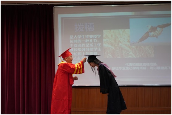 典礼最激动人心、也是最神圣的时刻到来,校长王兴放一一为每一位毕业同学拨穗正冠、颁发毕业证书和学位证书,代表着同学们已学有所成,可以展翅高飞。在场所有人为他们鼓掌欢呼,欢快的声音此起彼伏,响彻整个报告厅。