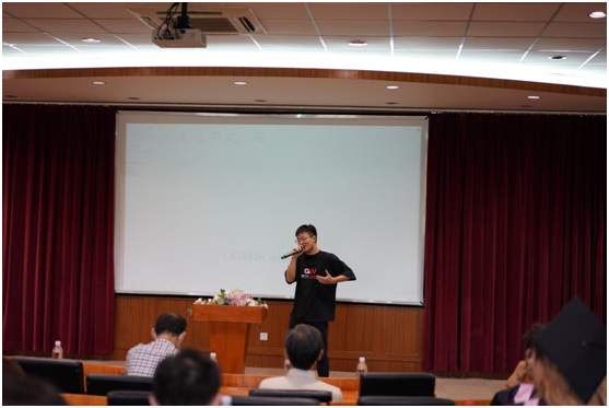 为了给典礼助兴,校园说唱歌手2018级郭继豪同学还特别为老师、家长和同学们带来了自己创作的两首说唱歌曲,歌词正适合此时的情景,表达了自己对大学四年生活的感悟和感谢,对新人生征程的憧憬和期盼。