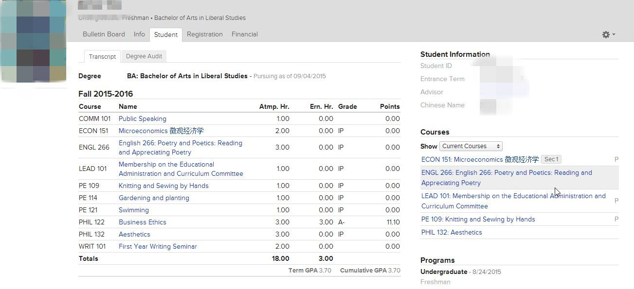 上海乐鱼网页版页面登录采用populi选课系统,便于学生自主选课,也可以对教授的教学提出自己的意见、建议和愿景,使老师能够真正了解学生的需要和想法。